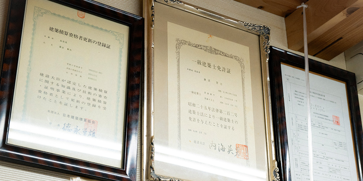 5名 うち 一級建築士4名・木造住宅耐震化技術者2名・建築士会インスペクター(中古住宅診断士)3名・建築積算士1名・応急危険度判定士2名・ヘリテージマネージャー(歴史文化遺産活用推進員)1名